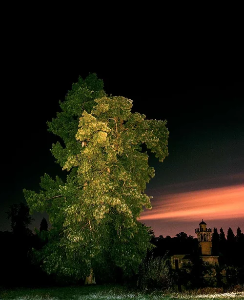 Originating from the east of the USA, this cypress tree was introduced in France in 1640. It was planted in parks at the end of the 18th century, at the water’s edge. Beautiful specimens adorn the Parc du Petit Trianon, Versailles (the tree in this image) and the Rambouillet park in France. This tree is situated on the edge of an artificial lake which formed part of the Hamlet of the Queen, a Norman style Hamlet especially built for Marie Antoinette from 1783 to 1785. In the background is the fishery tower or ‘Marlborough’ Tower.