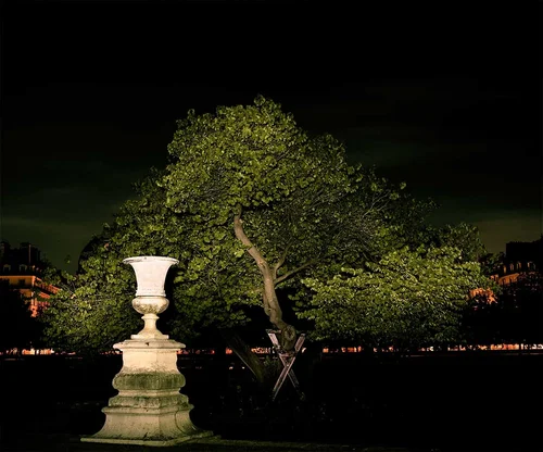 The Mûrier Blanc or White Mulberry tree originated in China and is a species found within the Moraceae family. The Tuileries Gardens were created for the widow of King Henri II, Catherine de Medici, but it was under King Henri IV reign, between 1589 and 1610 that mulberry trees were introduced to an area of the garden in the hope of cultivating silkworms. Sculpture in foreground, ‘Pericles distributing Wreaths to Artists’ by Jean-Baptiste Debay. Marble, 1833.