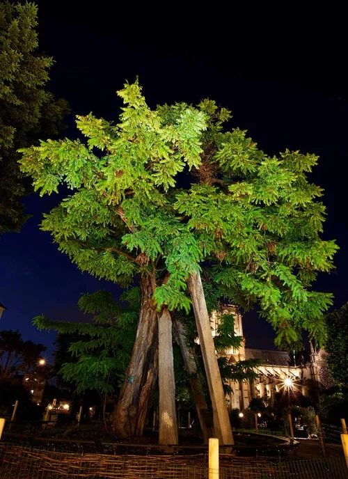Also known as the Japanese Pagoda Tree. Grown from the seeds of the “unknown Chinese tree” of the botanical garden of Louis XV in Trianon which flowered in 1779, it was planted in April 1783 following the birth of the dauphin, son of Louis XV and Marie Antoinette. According to legend, Marie Antoinette specifically asked for this tree to be planted near her bedroom window to commemorate the birth of her son, so that she could watch it grow at the same time as her son